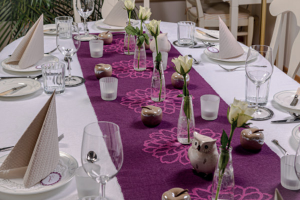 Großen Wert lege ich auf eine schöne Tischdekoration. Jede Einladung hat bei mir ein Motto. Ich liebe es, einen Tisch schön zu gestalten und ich kann dabei meiner Kreativität freien Lauf lassen.